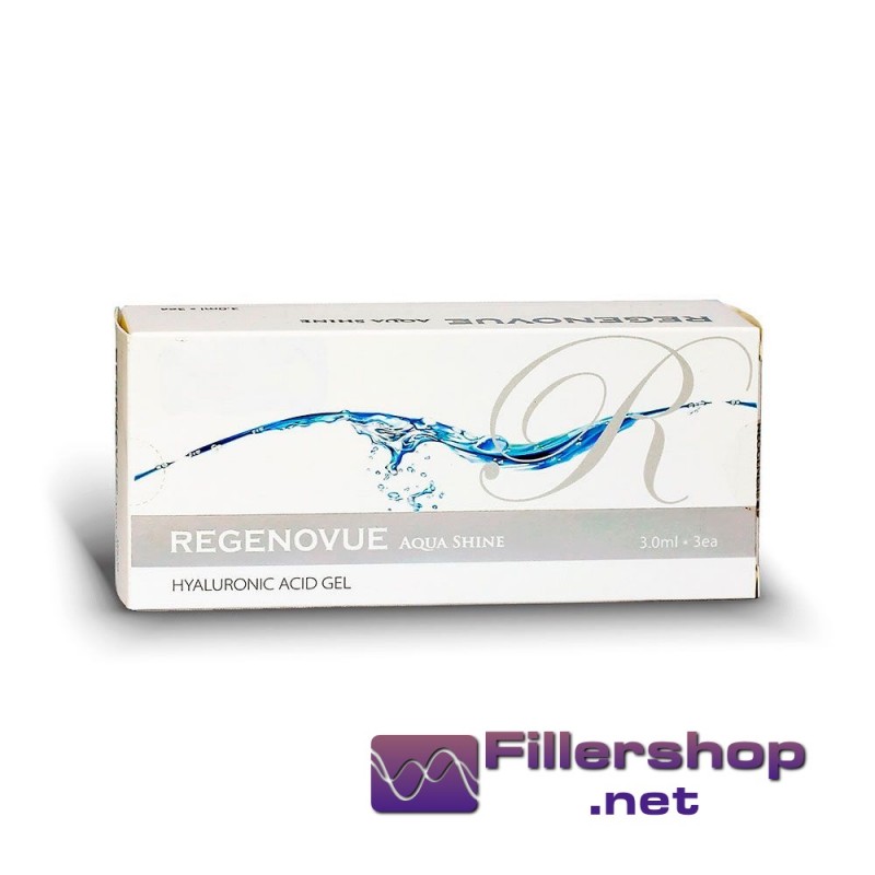 Regenovue Aqua Shine is a fantastic high-level mesotherapy product, which helps rejuvenate every area of the face, including the forehead, chin, nasolabial and even periorbital areas along with the lips. Furthermore, this mesotherapy treatment is really time-efficient. It can be applied to many different areas of the face to restore and revitalize it from within. Immediately following an injection session with this advanced HA (hyaluronic acid) skin rejuvenation product, fine lines and wrinkles are reduced, pores are tightened and closed, and skin tone and elasticity are improved , giving a fresh and youthful appearance. As we have said, this mesotherapy product is composed of synthetic and purified hyaluronic acid, completely biocompatible with human skin. However, therapy with this filler and cosmetic product should only be done under the supervision and on the advice of a licensed and qualified physician, who should also perform the injection sessions. Regenovue Aqua Shine is an excellent filler solution for rejuvenation and acts on several fronts to restore the youthful appearance of the skin. To achieve this with great ease since it contains high-class hyaluronic acid of non-animal origin and therefore completely natural, this substance is naturally present in the human body. Regenovue Aqua Shine has therefore guaranteed biocompatibility with human skin so it will be completely absorbed by the soft tissues into which it was injected and then be completely dissolved. The HA in this product quickly hydrates and rehydrates the skin from within. Doing so will also reduce the appearance of wrinkles and surface lines and that of enlarged pores. This domino effect helps the skin to become clearer, smoother and brighter.