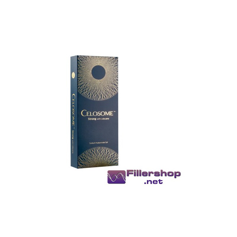 Celosome Strong filler med lidokain er et 100 % kryssbundet hyaluronsyrefyllstoff av ikke-animalsk opprinnelse som inneholder 0,3 % lidokain for behandling av rynker og mer eller mindre alvorlige rynker. Med den ultrafunksjonelle 8-fase teknologien til ExoCabio har den en flerveis membran for fullstendig fjerning av BDDE, metallioner og fremmedlegemer. Den har også avioniserte planter og et ultrarent vannsystem for å minimere urenheter og endotoksiner. HENM tverrbindingsteknologien er nyttig for en lengre varighet, og en viskoelastisitet som gjør den på de høyeste nivåene.
